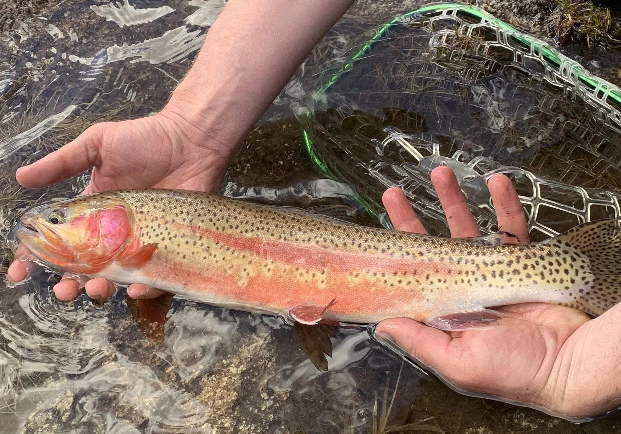 After the carp at the reservoir, we headed north for an hour of fishing on the Wind River. There is a small stretch of land north of the Boysen Reservoir dam that has incredible bug life and excellent water for big trout. The amount of surface takes compared to the amount of bugs was confusing. However, there are are some tail waters so rich in insect lift that a trout can just hold in a feeding lane and open its mouth. So after a few different assorted caddis, and dry dropper rigs, I went to the old standby of a rubber legs and a zebra midge and caught two beautiful trout.