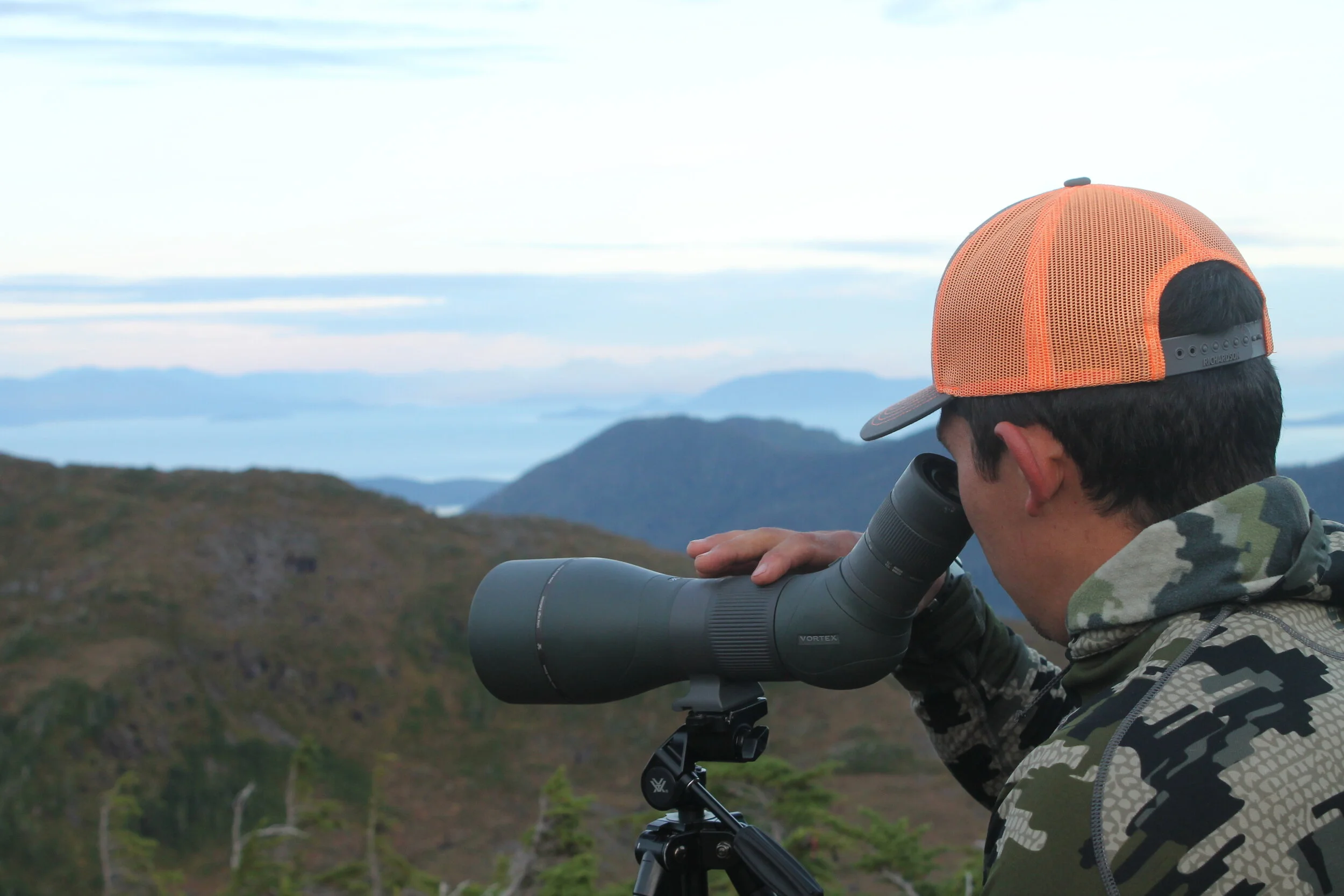 Dual purpose hunt with Ryan. We were looking for either a buck or a bear with the bow. As long as the vegetation hasn’t died the deer stay up top. Glassed for a few hours, saw a few bears, but nothing to make a move on. Made friends with a dude from Germany who was over here hunting. Such a great dude. Had flown into a lake but was so terrified of all the brown bears, he got picked up early and came back to town. No brown bears on Revilla, but there are some on the mainland which is just across the Behm Canal on Cleveland Peninsula. They made a stalk on a bear, but the guy decided not to shoot. We loaned him some cooking gear and he sent a text two days later of a bear he shot. We figured he just wanted to do it on his own terms. Glad we could make a friend on the mountain.